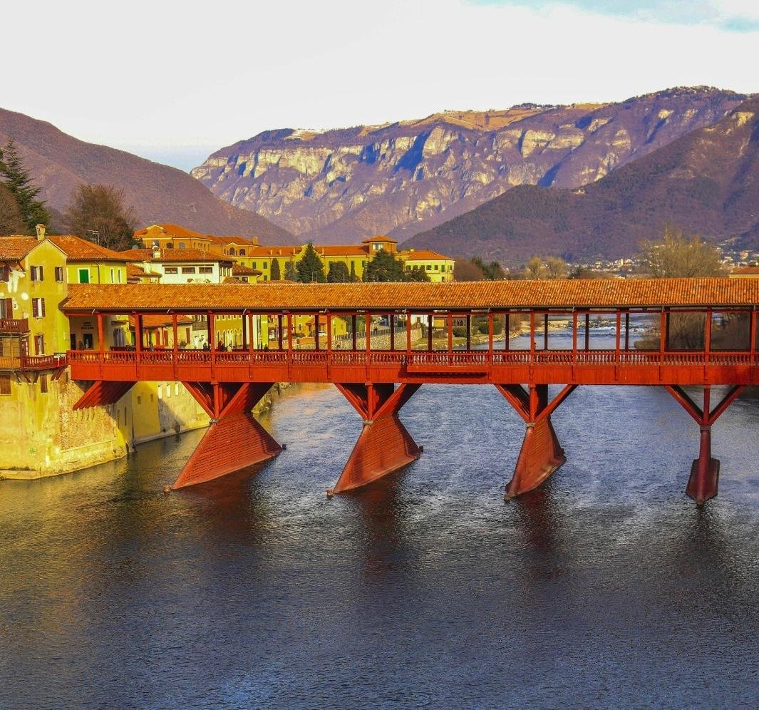 Bassano del Grappa è una vivace città veneta ai piedi del Monte Grappa, famosa per il suo iconico PONTE VECCHIO in legno, progettato da Palladio, e per la storica produzione della grappa che porta il suo nome.