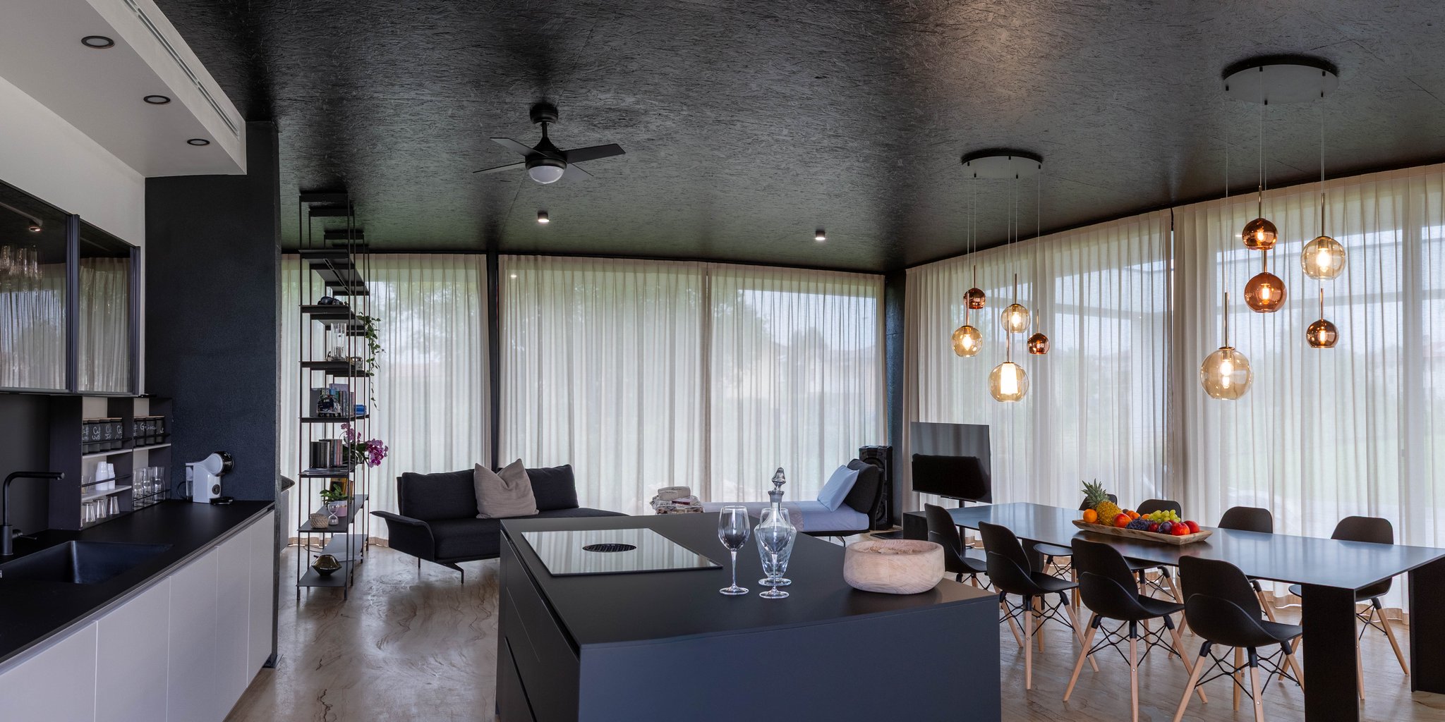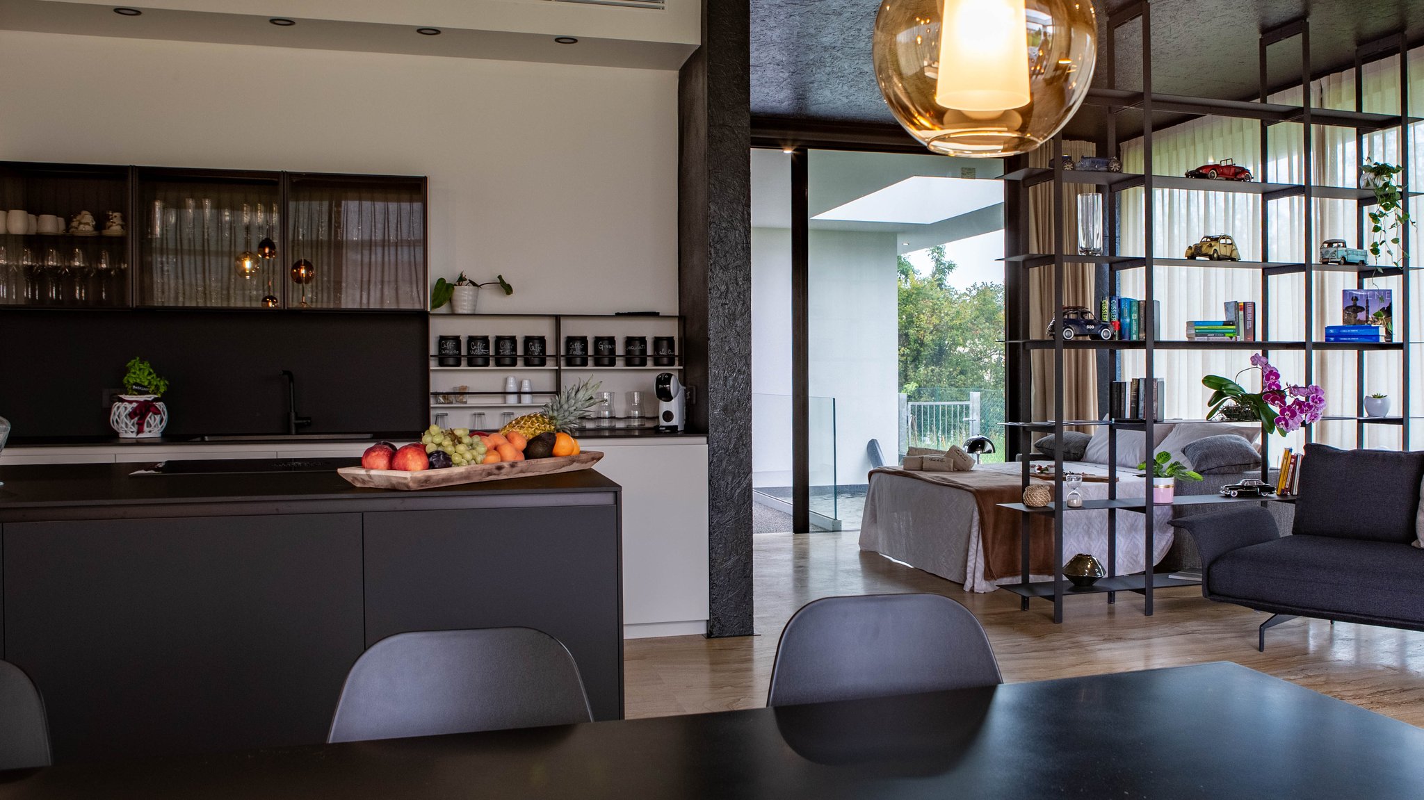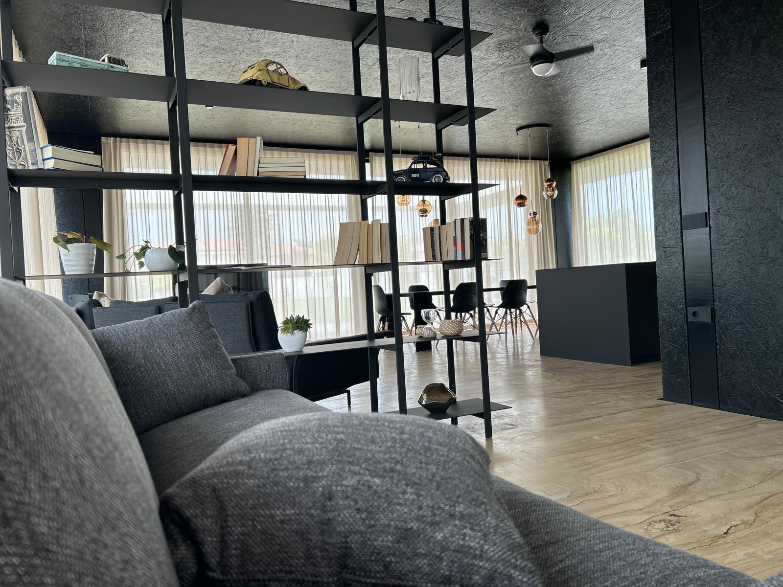 Open space ampio e luminoso, arredato con gusto contemporaneo e dettagli di design
